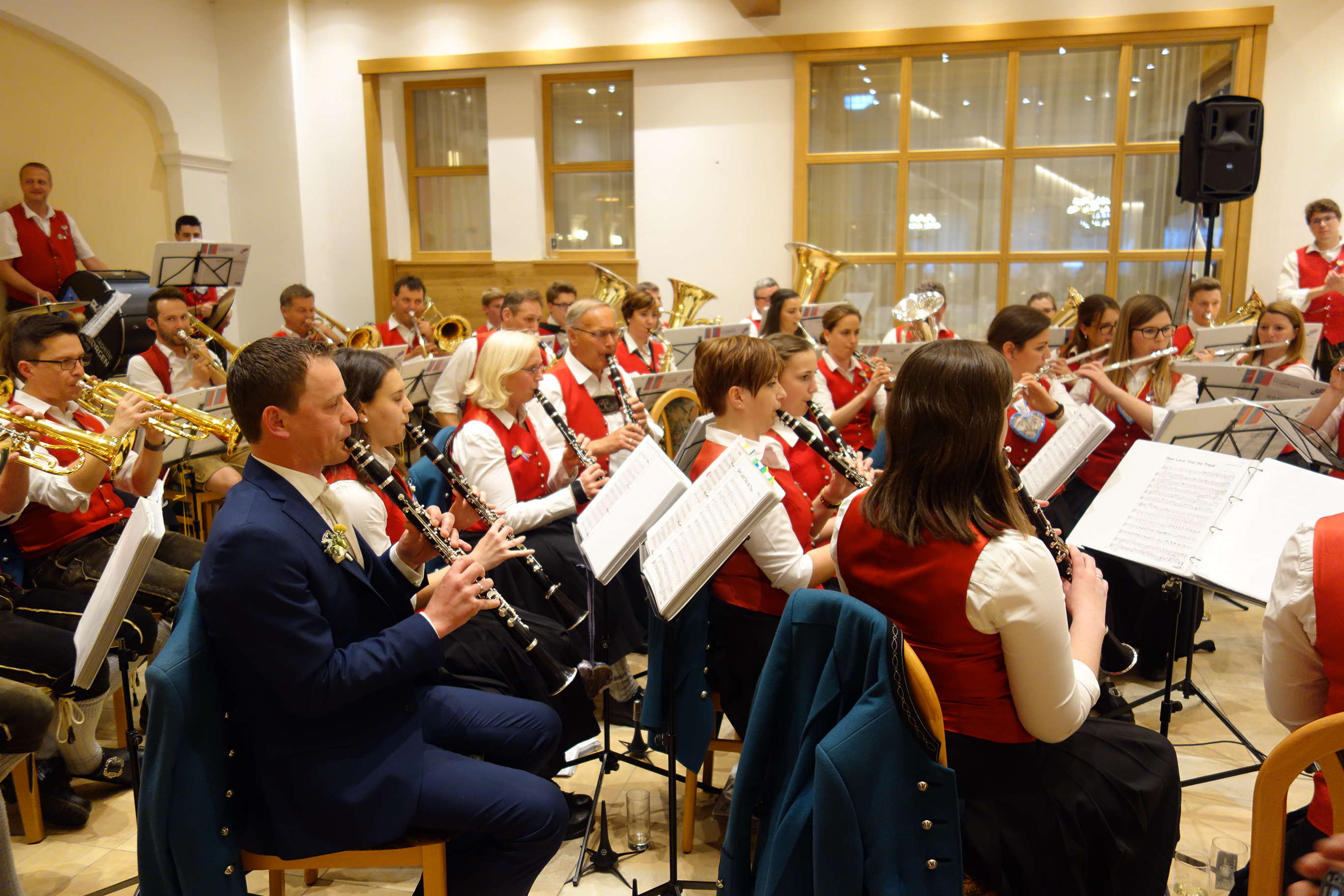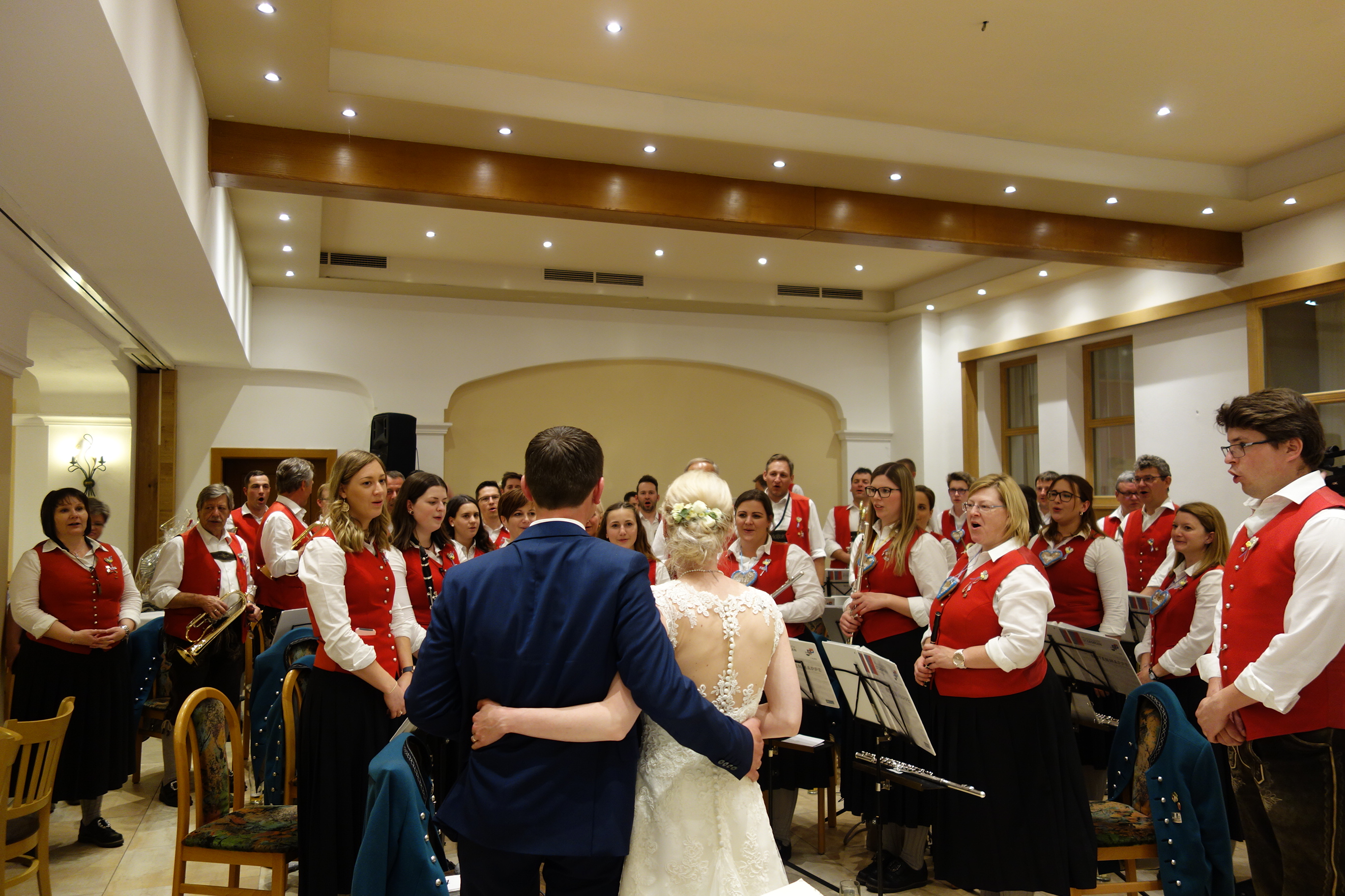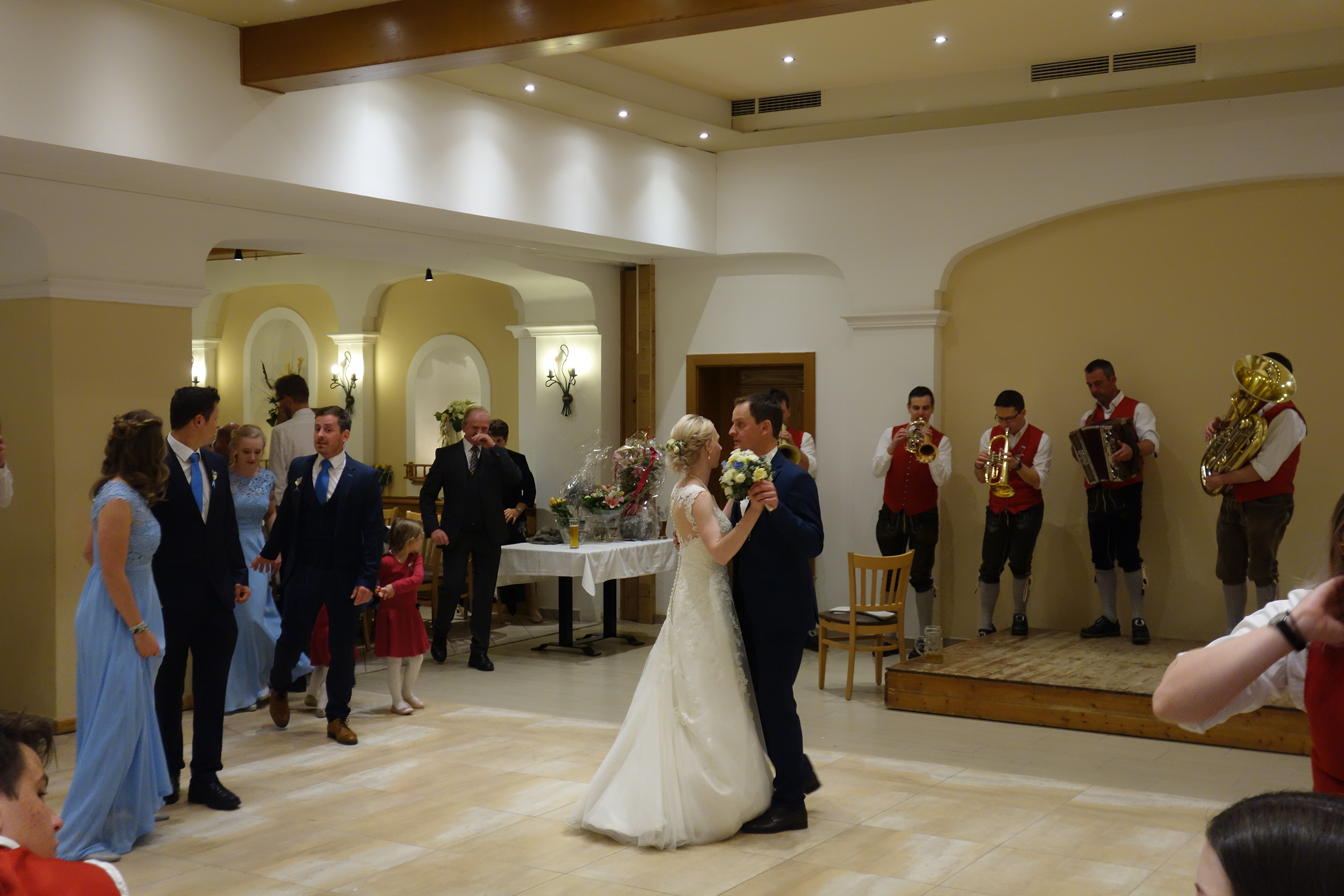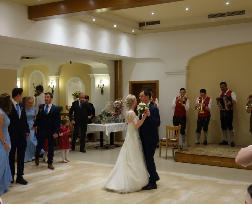 Bei der anschließenden Hochzeitsfeier im Gasthaus Gugg durften wir noch ein kleines Konzert für das Brautpaar und die Hochzeitsgäste spielen. Danach wurde natürlich gebührend gefeiert 🙂