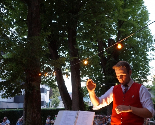 Beim zweiten Termin der Konzerte im Kottulinskypark hatten wir mit dem Wetter etwas mehr Glück. So konnten wir pünktlich um 20 Uhr bei Sonnenschein und lauen Temperaturen bei der Gemeinde wegmarschieren.